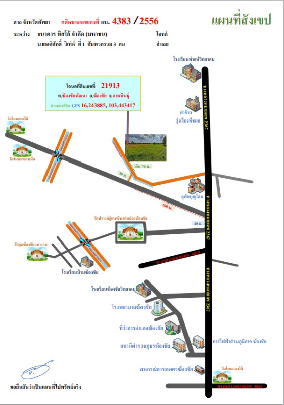 ศูนย์ข้อมูลฯ ได้ทำการตรวจสอบตำแหน่งที่ตั้งทรัพย์บนแผนที่ที่ปรากฎอยู่บนเว็บไซต์ โดยอาศัยข้อมูลจากแหล่งข้อมูลต่างๆ ที่เชื่อถือได้ เพื่อให้ตำแหน่งทรัพย์บนแผนที่ ใช้อ้างอิงท่านไปยังที่ตั้งของทรัพย์นั้นๆ โดยประมาณ ทั้งนี้ศูนย์ข้อมูลฯ ไม่สามารถยืนยันความถูกต้องของตำแหน่งทรัพย์ได้ ดังนั้น ทางศูนย์ข้อมูลฯ ขอสงวนสิทธิ์ไม่รับผิดชอบต่อข้อผิดพลาดทางตำแหน่งทรัพย์ที่เกิดขึ้นบนแผนที่ ผู้นำข้อมูลไปใช้พึงใช้วิจารณญาณและตรวจสอบตามความเหมาะสม