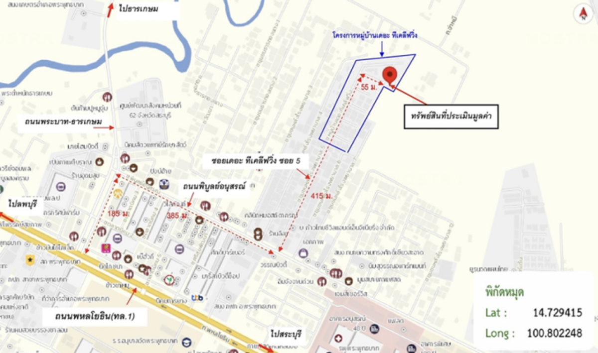 ศูนย์ข้อมูลฯ ได้ทำการตรวจสอบตำแหน่งที่ตั้งทรัพย์บนแผนที่ที่ปรากฎอยู่บนเว็บไซต์ โดยอาศัยข้อมูลจากแหล่งข้อมูลต่างๆ ที่เชื่อถือได้ เพื่อให้ตำแหน่งทรัพย์บนแผนที่ ใช้อ้างอิงท่านไปยังที่ตั้งของทรัพย์นั้นๆ โดยประมาณ ทั้งนี้ศูนย์ข้อมูลฯ ไม่สามารถยืนยันความถูกต้องของตำแหน่งทรัพย์ได้ ดังนั้น ทางศูนย์ข้อมูลฯ ขอสงวนสิทธิ์ไม่รับผิดชอบต่อข้อผิดพลาดทางตำแหน่งทรัพย์ที่เกิดขึ้นบนแผนที่ ผู้นำข้อมูลไปใช้พึงใช้วิจารณญาณและตรวจสอบตามความเหมาะสม