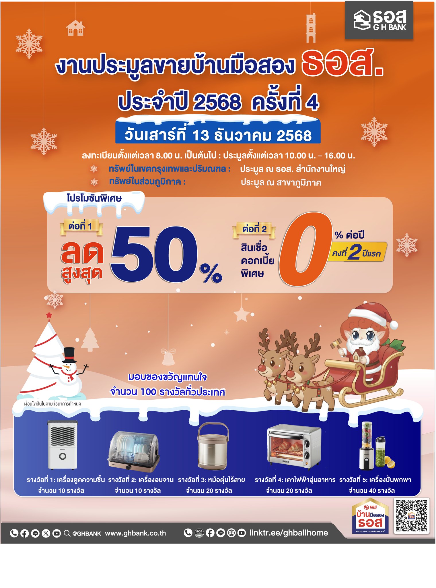 👋🏻 มาเลย มาเลือก มาลุ้น มาจอง! 🏡 บ้านมือสอง 🏘️ทำเลทอง ราคาโดน พร้อมโอนทันที …พบกันที่ 😍🔥งาน 🎉 “ประมูลขายบ้านมือสอง ธอส. ประจำปี 𝟐𝟓𝟔𝟖 ครั้งที่ 𝟒