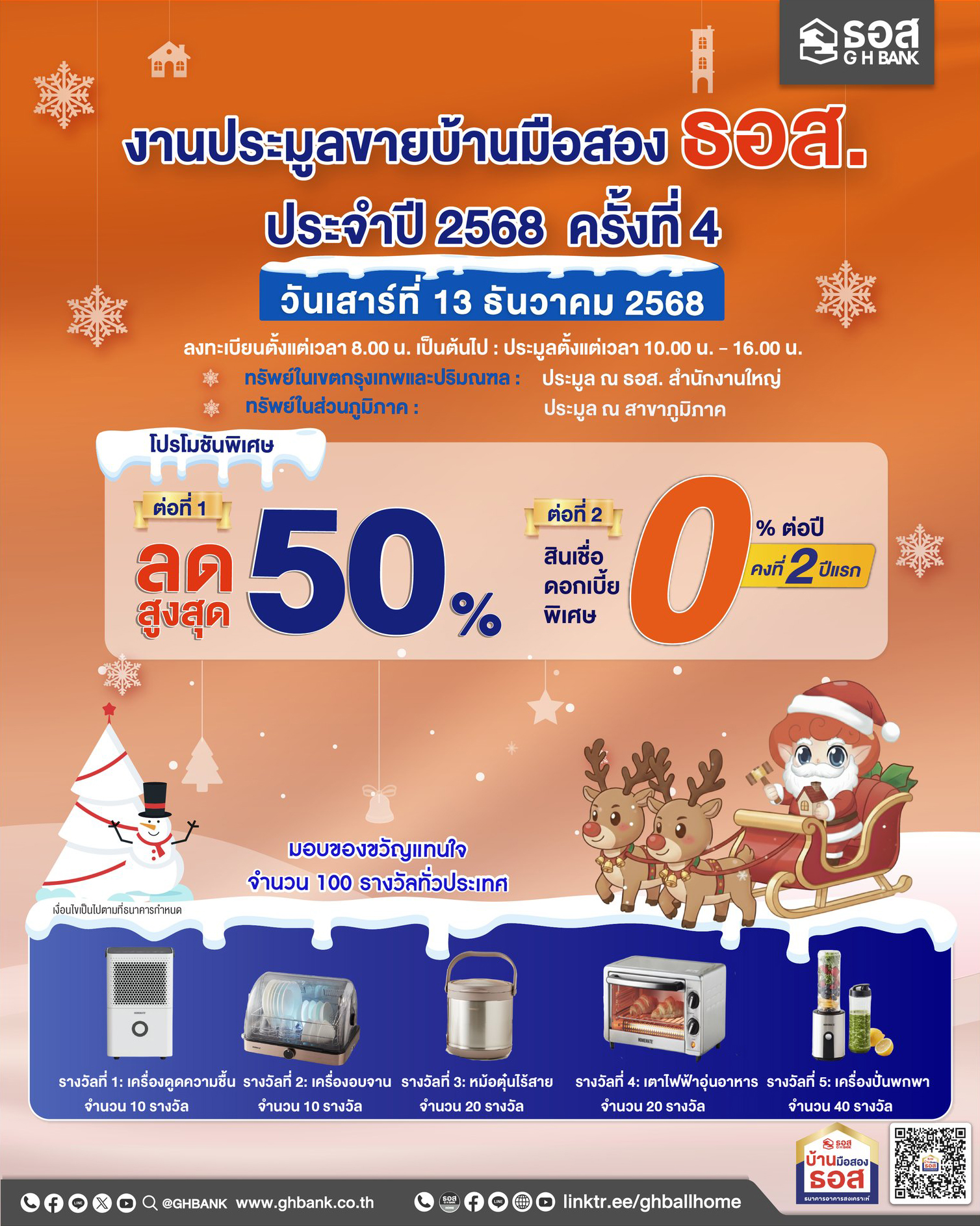 ประมูลขายบ้านมือสอง ธอส. ประจำปี 𝟐𝟓𝟔𝟖 ครั้งที่ 𝟒