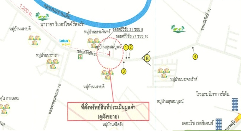 ศูนย์ข้อมูลฯ ได้ทำการตรวจสอบตำแหน่งที่ตั้งทรัพย์บนแผนที่ที่ปรากฎอยู่บนเว็บไซต์ โดยอาศัยข้อมูลจากแหล่งข้อมูลต่างๆ ที่เชื่อถือได้ เพื่อให้ตำแหน่งทรัพย์บนแผนที่ ใช้อ้างอิงท่านไปยังที่ตั้งของทรัพย์นั้นๆ โดยประมาณ ทั้งนี้ศูนย์ข้อมูลฯ ไม่สามารถยืนยันความถูกต้องของตำแหน่งทรัพย์ได้ ดังนั้น ทางศูนย์ข้อมูลฯ ขอสงวนสิทธิ์ไม่รับผิดชอบต่อข้อผิดพลาดทางตำแหน่งทรัพย์ที่เกิดขึ้นบนแผนที่ ผู้นำข้อมูลไปใช้พึงใช้วิจารณญาณและตรวจสอบตามความเหมาะสม