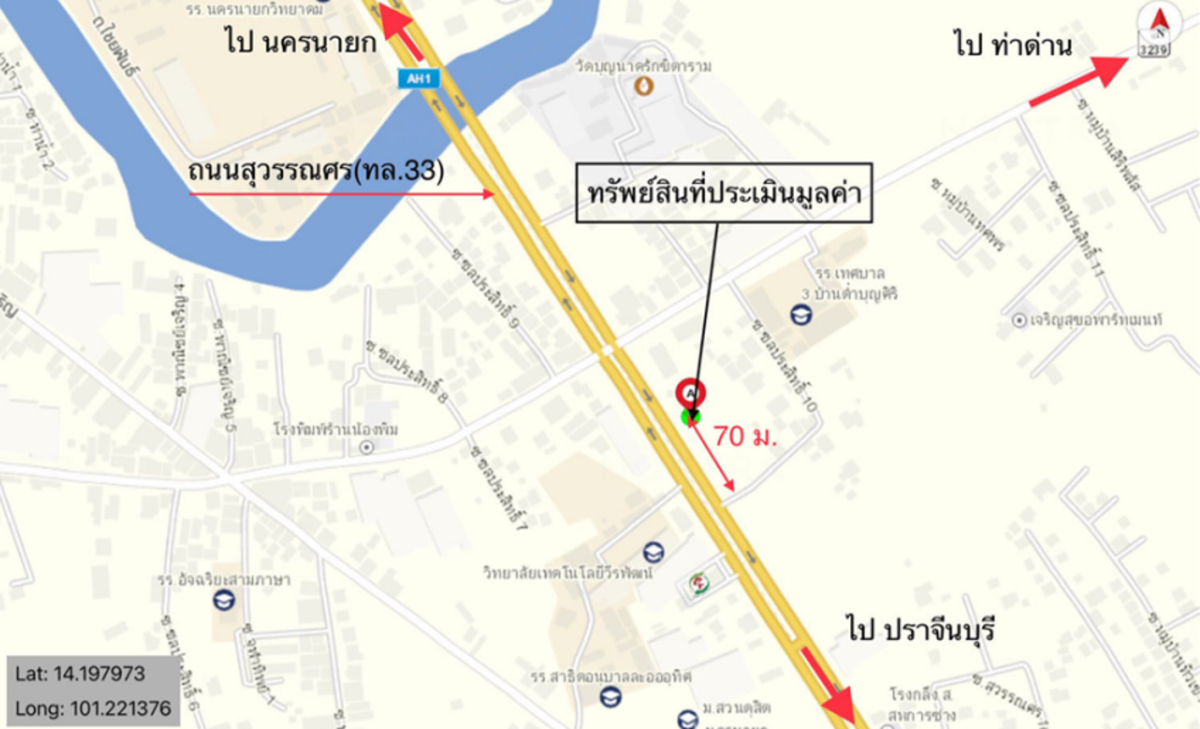 ศูนย์ข้อมูลฯ ได้ทำการตรวจสอบตำแหน่งที่ตั้งทรัพย์บนแผนที่ที่ปรากฎอยู่บนเว็บไซต์ โดยอาศัยข้อมูลจากแหล่งข้อมูลต่างๆ ที่เชื่อถือได้ เพื่อให้ตำแหน่งทรัพย์บนแผนที่ ใช้อ้างอิงท่านไปยังที่ตั้งของทรัพย์นั้นๆ โดยประมาณ ทั้งนี้ศูนย์ข้อมูลฯ ไม่สามารถยืนยันความถูกต้องของตำแหน่งทรัพย์ได้ ดังนั้น ทางศูนย์ข้อมูลฯ ขอสงวนสิทธิ์ไม่รับผิดชอบต่อข้อผิดพลาดทางตำแหน่งทรัพย์ที่เกิดขึ้นบนแผนที่ ผู้นำข้อมูลไปใช้พึงใช้วิจารณญาณและตรวจสอบตามความเหมาะสม