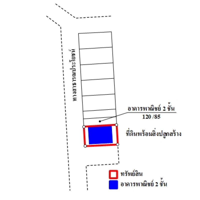ที่ดินเป็นรูปสี่เหลี่ยมผืนผ้า ตั้งอยู่ติดถนน 2 ด้าน ขนาดแปลงที่ดินด้านทิศตะวันตก กว้างประมาณ 10 ม. และด้านทิศใต้ กว้างประมาณ 17 ม. ลึกประมาณ 17 ม.บสส. รับโอนกรรมสิทธิ์สิ่งปลูกสร้างระบุเป็นตึกแถวสองชั้น จำนวน 2 คูหา เลขที่ 120/86-87ถนนผ่านหน้าทรัพย์สิน ได้แก่ ถนนภายในโครงการฯ เป็นทางสาธารณประโยชน์ ผิวจราจรคอนกรีต กว้างประมาณ 8 ม. เขตทางกว้างประมาณ 12 ม.