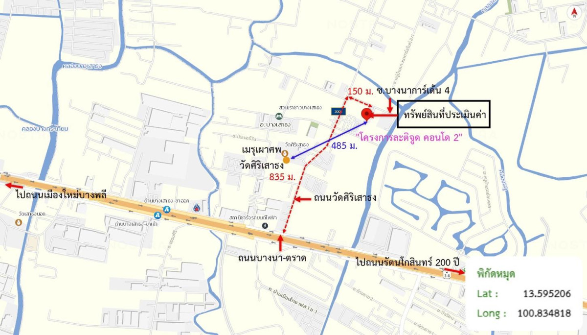 ศูนย์ข้อมูลฯ ได้ทำการตรวจสอบตำแหน่งที่ตั้งทรัพย์บนแผนที่ที่ปรากฎอยู่บนเว็บไซต์ โดยอาศัยข้อมูลจากแหล่งข้อมูลต่างๆ ที่เชื่อถือได้ เพื่อให้ตำแหน่งทรัพย์บนแผนที่ ใช้อ้างอิงท่านไปยังที่ตั้งของทรัพย์นั้นๆ โดยประมาณ ทั้งนี้ศูนย์ข้อมูลฯ ไม่สามารถยืนยันความถูกต้องของตำแหน่งทรัพย์ได้ ดังนั้น ทางศูนย์ข้อมูลฯ ขอสงวนสิทธิ์ไม่รับผิดชอบต่อข้อผิดพลาดทางตำแหน่งทรัพย์ที่เกิดขึ้นบนแผนที่ ผู้นำข้อมูลไปใช้พึงใช้วิจารณญาณและตรวจสอบตามความเหมาะสม