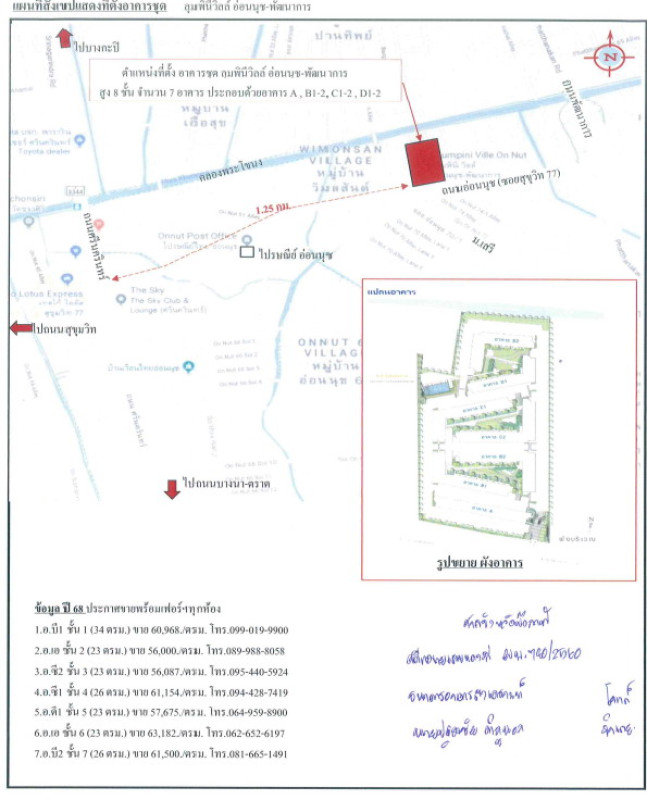 หมายเหตุ*: เนื้อที่ห้องชุดรวมเนื้อที่ระบียงแล้ว