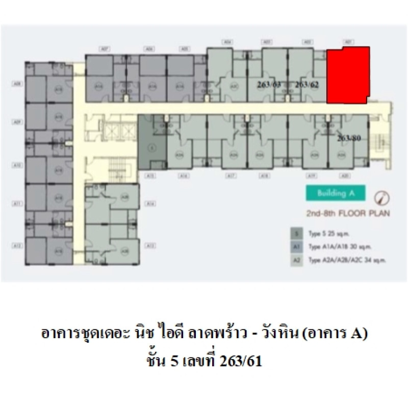 ห้องชุดพักอาศัย เลขที่ 263/61 ชั้นที่ 5 อาคารเลขที่ เอ ชื่ออาคารชุด เดอะ นิช ไอดี ลาดพร้าว-วังหิน ทะเบียนอาคารชุดเลขที 1/2556 อัตราส่วนแห่งกรรมสิทธิ์ในทรัพย์ส่วนกลาง : 35.13 ส่วน ใน 9,711.59 ส่วนข้อมูลอาคารชุด : อาคารสูง 8 ชั้น มีจำนวนห้องชุดรวม 301 ห้อง โดยโครงการฯ มีทั้งหมด 2 อาคาร ลิฟท์โดยสาร 2 ชุด/อาคาร สระว่ายน้ำ ฟิตเนส ยามรักษาการ 24 ช.ม. กล้องวงจรปิด บัตรเข้า-ออก สวนหย่อม ระบบปัองกันอัคคีภัยข้อมูลค่าส่วนกลาง ณ วันที่ 7 พ.ค. 67 ประมาณ 16,862.40 บาท / ปี