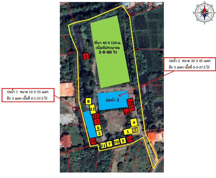 เป็นที่ดินและสิ่งปลูกสร้าง เป็นรีสอร์ด รูปแปลงหลายเหลี่ยม ติดถนน 1 ด้าน หน้ากว้างคิดถนนประมาณ 6 ม. ความลึกประมาณ 288 ม. สภาพที่ดินถมแล้วระดับดินเสมอถนนที่ดินบางส่วนมีสภาพเป็นที่นา ขนาดกว้างประมาณ 40x120 ม. คิดเป็นเนื้อที่ประมาณ 3-0-0 ไร่ และมีบ่อน้ำจำนวน 2 บ่อ บ่อที่ 1 ขนาดกว้างประมาณ 10x55 ม. ลึก 3 ม. คิดเป็นเนื้อที่ 0-1-37.5 ไร่ บ่อที่ 2 ขนาดกว้างประมาณ 30x45 ม. ลึก 3 ม. คึิดเป็นเนื้อที่ 0-3-37.5 ไร่ รวมเนื้อที่บ่อน้ำ 1-0-75 ไร่ และมีอาคารสิ่งปลูกสร้าง 14 รายการ ส่วนมากจะเป็นอาคารพักอาศัย 1 ชั้น และอาคารสำนักงาน