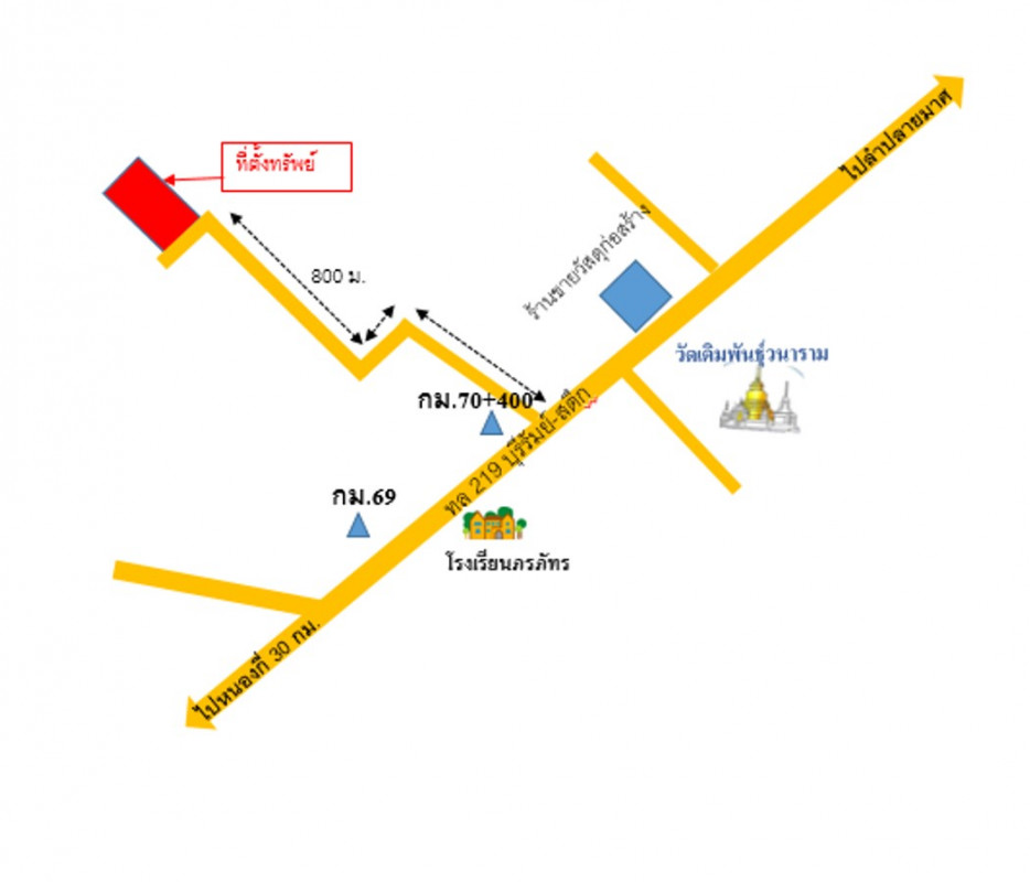 แยกจากถนนสายหนองกี่-ลำปลายมาศ(2166) กม. 70-400 แยกเข้าไป 800 เมตร