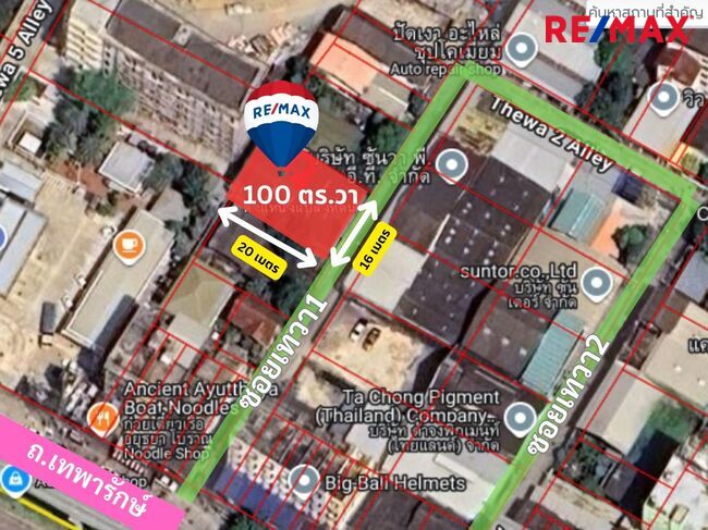- ที่ดินขนาด: 100 ตารางวา (16x20 เมตร)