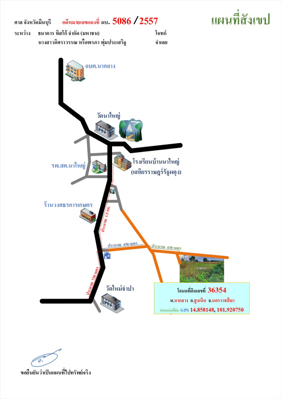 ศูนย์ข้อมูลฯ ได้ทำการตรวจสอบตำแหน่งที่ตั้งทรัพย์บนแผนที่ที่ปรากฎอยู่บนเว็บไซต์ โดยอาศัยข้อมูลจากแหล่งข้อมูลต่างๆ ที่เชื่อถือได้ เพื่อให้ตำแหน่งทรัพย์บนแผนที่ ใช้อ้างอิงท่านไปยังที่ตั้งของทรัพย์นั้นๆ โดยประมาณ ทั้งนี้ศูนย์ข้อมูลฯ ไม่สามารถยืนยันความถูกต้องของตำแหน่งทรัพย์ได้ ดังนั้น ทางศูนย์ข้อมูลฯ ขอสงวนสิทธิ์ไม่รับผิดชอบต่อข้อผิดพลาดทางตำแหน่งทรัพย์ที่เกิดขึ้นบนแผนที่ ผู้นำข้อมูลไปใช้พึงใช้วิจารณญาณและตรวจสอบตามความเหมาะสม