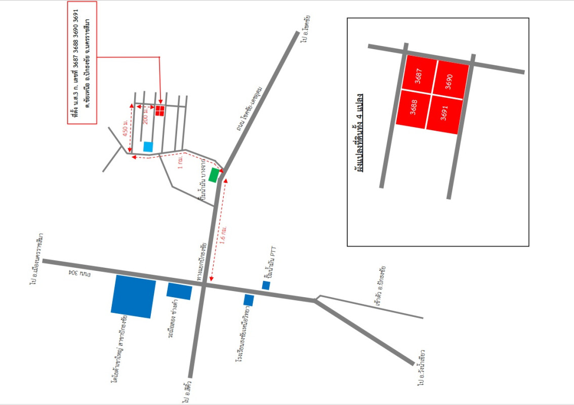 หมายเหตุ*: ขายรวม (แปลงที่ 1-4) รวม 4 แปลง, ราคาประเมินรวม 400,000.-บาท
