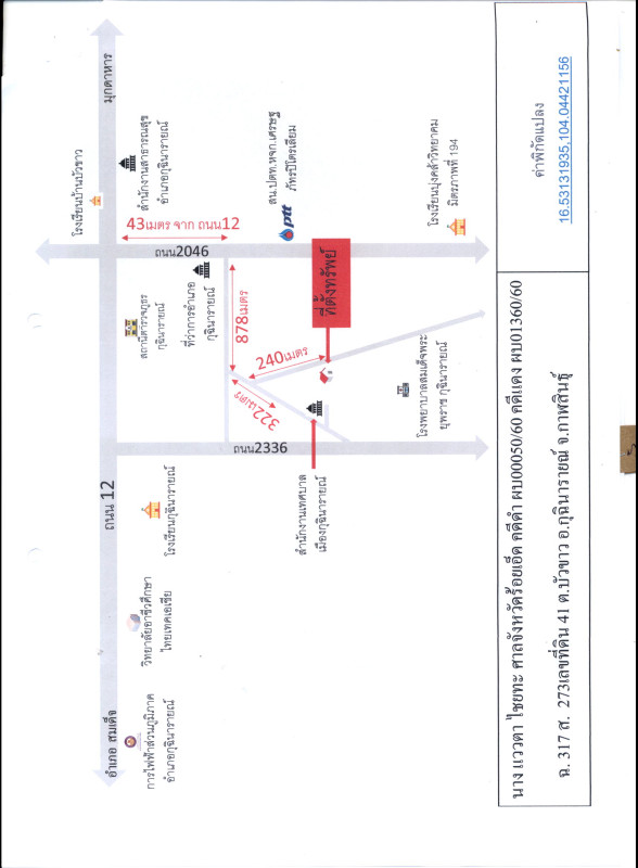 ศูนย์ข้อมูลฯ ได้ทำการตรวจสอบตำแหน่งที่ตั้งทรัพย์บนแผนที่ที่ปรากฎอยู่บนเว็บไซต์ โดยอาศัยข้อมูลจากแหล่งข้อมูลต่างๆ ที่เชื่อถือได้ เพื่อให้ตำแหน่งทรัพย์บนแผนที่ ใช้อ้างอิงท่านไปยังที่ตั้งของทรัพย์นั้นๆ โดยประมาณ ทั้งนี้ศูนย์ข้อมูลฯ ไม่สามารถยืนยันความถูกต้องของตำแหน่งทรัพย์ได้ ดังนั้น ทางศูนย์ข้อมูลฯ ขอสงวนสิทธิ์ไม่รับผิดชอบต่อข้อผิดพลาดทางตำแหน่งทรัพย์ที่เกิดขึ้นบนแผนที่ ผู้นำข้อมูลไปใช้พึงใช้วิจารณญาณและตรวจสอบตามความเหมาะสม