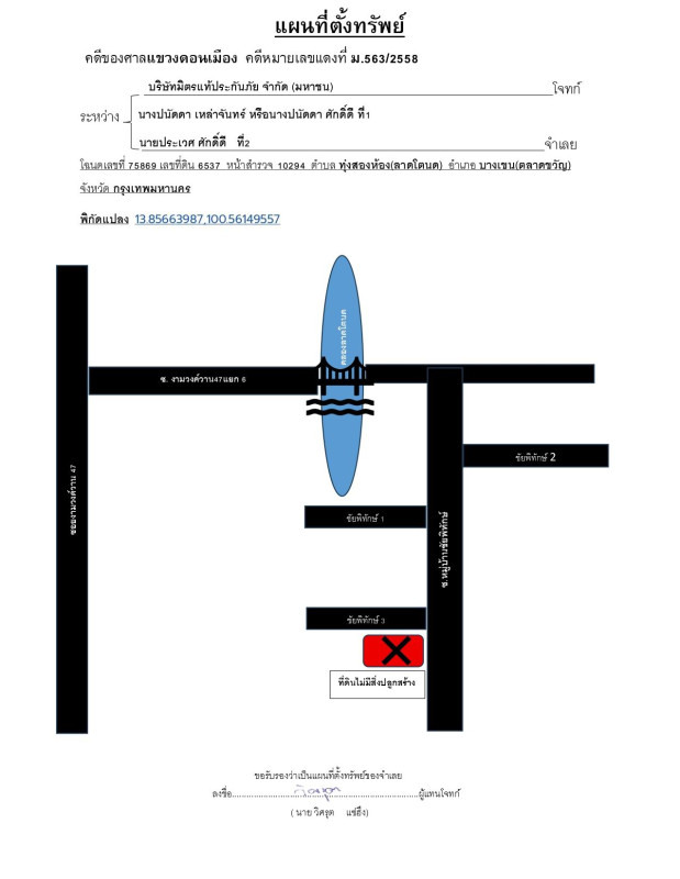 ศูนย์ข้อมูลฯ ได้ทำการตรวจสอบตำแหน่งที่ตั้งทรัพย์บนแผนที่ที่ปรากฎอยู่บนเว็บไซต์ โดยอาศัยข้อมูลจากแหล่งข้อมูลต่างๆ ที่เชื่อถือได้ เพื่อให้ตำแหน่งทรัพย์บนแผนที่ ใช้อ้างอิงท่านไปยังที่ตั้งของทรัพย์นั้นๆ โดยประมาณ ทั้งนี้ศูนย์ข้อมูลฯ ไม่สามารถยืนยันความถูกต้องของตำแหน่งทรัพย์ได้ ดังนั้น ทางศูนย์ข้อมูลฯ ขอสงวนสิทธิ์ไม่รับผิดชอบต่อข้อผิดพลาดทางตำแหน่งทรัพย์ที่เกิดขึ้นบนแผนที่ ผู้นำข้อมูลไปใช้พึงใช้วิจารณญาณและตรวจสอบตามความเหมาะสม