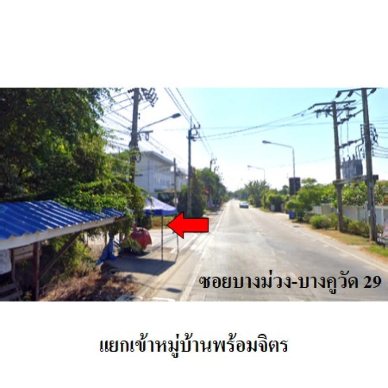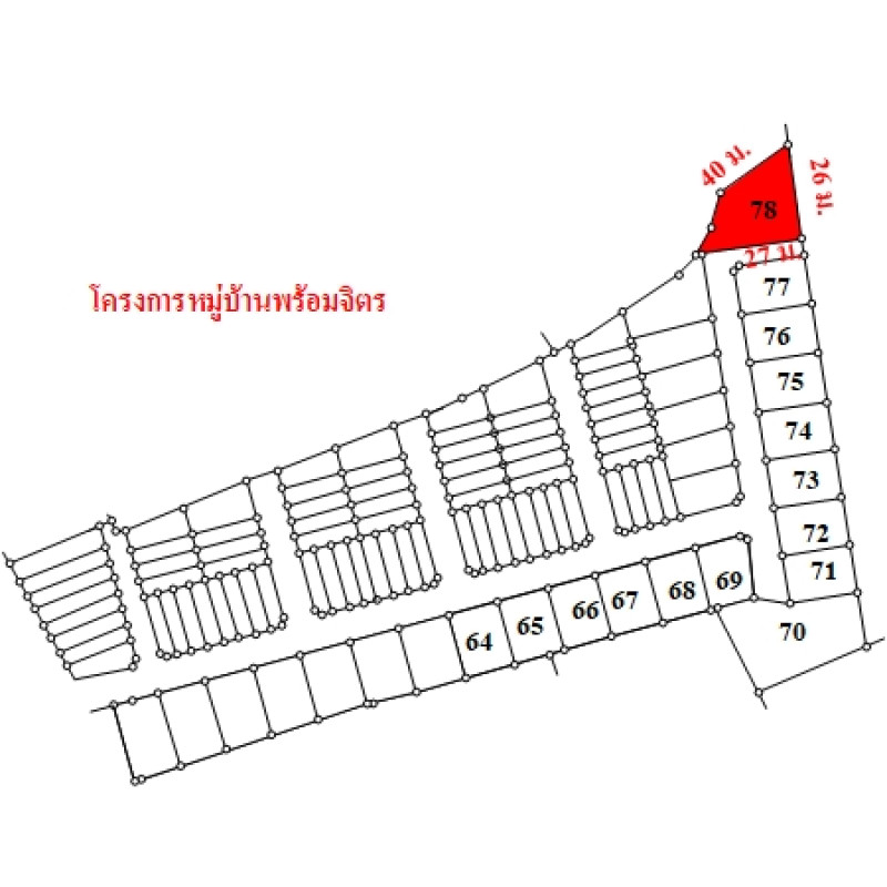 ที่ดินเป็นคล้ายรูปสามเหลี่ยม ขนาดแปลงที่ดินด้านทิศใต้ติดถนน กว้างประมาณ 27 ม. ลึกประมาณ 26 ม. ด้านทิศตะวันตกเฉียงเหนือ กว้างประมาณ 40 ม. ระดับที่ดินสูงกว่าถนนผ่านหน้าประมาณ 0.2 ม.ถนนผ่านหน้าทรัพย์สิน ได้แก่ ถนนภายในโครงการหมู่บ้านพร้อมจิตร เป็นทางในโครงการจัดสรรที่ได้รับอนุญาตแล้ว ผิวจราจรคอนกรีต กว้างประมาณ 6-12 ม. เขตทางกว้างประมาณ 8-14 ม.