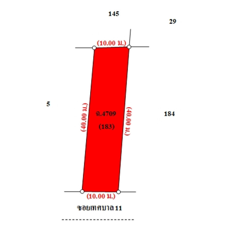 ที่ดินเป็นรูปสี่เหลี่ยมผืนผ้า ขนาดแปลงที่ดินด้านทิศใต้ติดถนน กว้างประมาณ 10 ม. ลึกประมาณ 40 ม. ระดับที่ดินสูงเสมอถนนถนนผ่านหน้าทรัพย์สิน ได้แก่ ซอยเทศบาล 11 เป็นทางสาธารณประโยชน์ ผิวจราจรคอนกรีต กว้างประมาณ 4 ม. เขตทางกว้างประมาณ 6 ม.