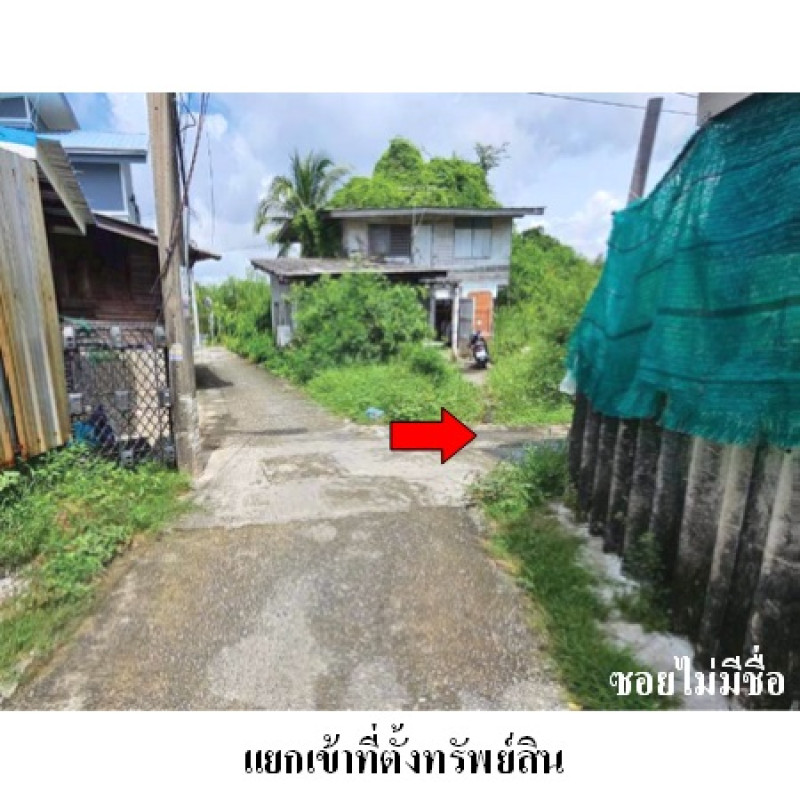 ที่ดินเป็นรูปหลายเหลี่ยม ขนาดแปลงที่ดินด้านทิศตะวันออก กว้างประมาณ 10 ม. (ส่วนที่ติดถนน กว้างประมาณ 1.5 ม.) ลึกสุดประมาณ 34.8 ม. ระดับที่ดินต่ำกว่าถนนประมาณ 1.5 ม.ถนนผ่านหน้าทรัพย์สิน เป็นทางสาธารณประโยชน์ (ทางเดินเท้า) ผิวจราจรคอนกรีต กว้างประมาณ 1 ม. เขตทางกว้างประมาณ 1.5 ม. (รถยนต์ไม่สามารถเข้า-ออกได้)