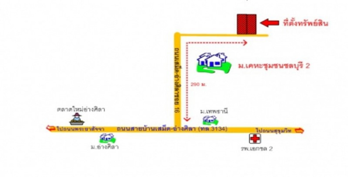 ทรัพย์เป็นบ้านแฝดพักอาศัย 2 ชั้น จำนวน 2 หลัง บ้านเลขที่ 88/36 และ 88/37 หมู่ที่ 3 ตั้งอยู่โครงการเคหะชุมชนชลบุรี 2 จากถนนสุขุมวิท แยกเข้าถนนเสม็ด-อ่างศิลา ประมาณ 2.2 กม.