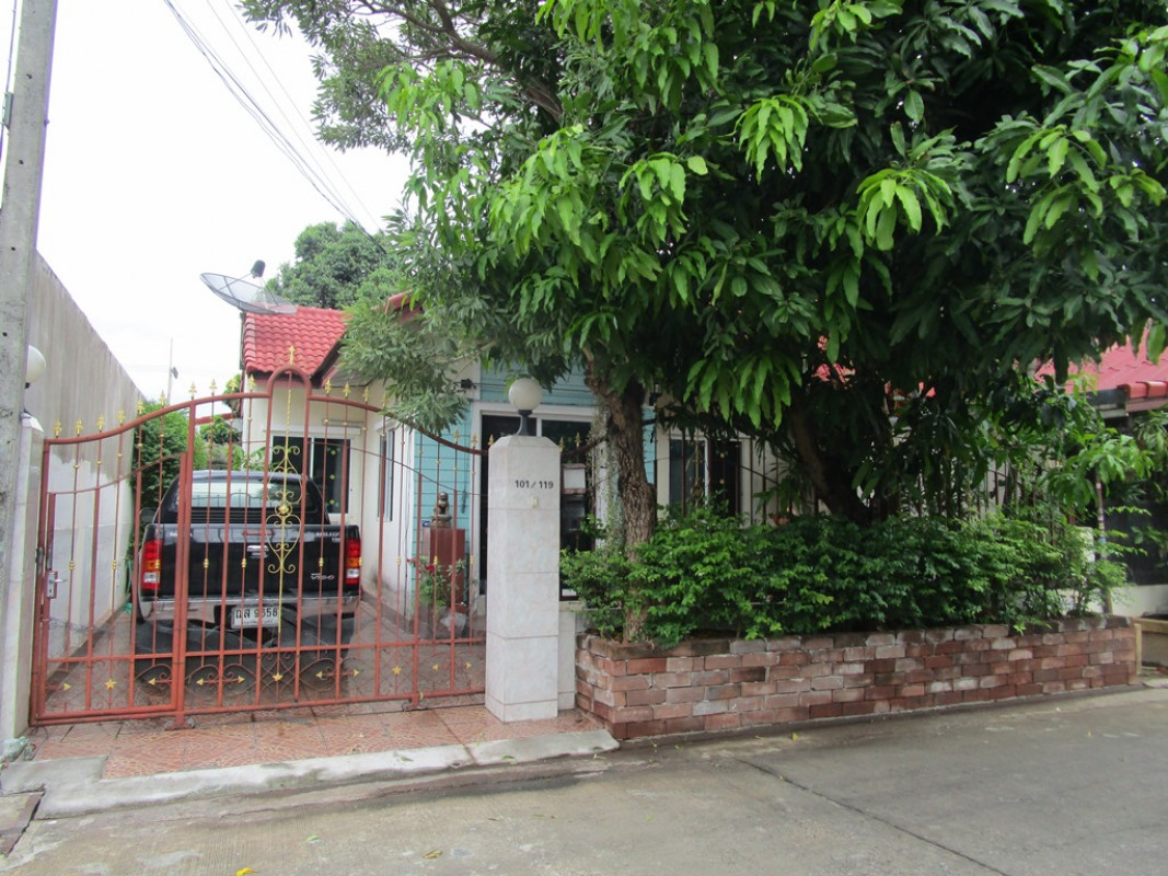บ้านแฝดชั้นเดียว ตัวอาคารขนาด 7x8 ม. ขนาดที่ดิน 9.5x15.5 ม. พื้นที่ใช้สอยรวม 38.5 ตรม. สาธารณูปโภคครบครัน