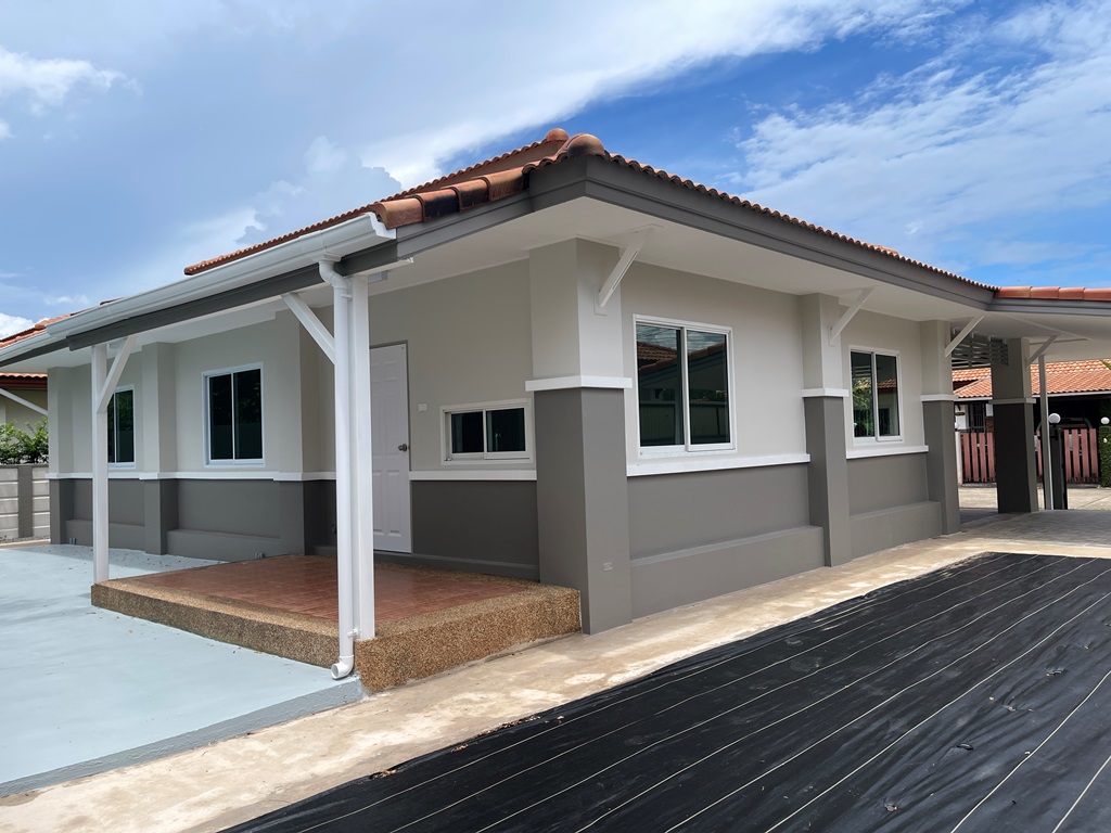 บ้านเดี่ยว 1 ชั้น ภายในประกอบด้วย 3 ห้องนอน 2 ห้องน้ำ 1 ห้องครัว พร้อมระบบความปลอดภัย, เจ้าหน้าที่รักษาความปลอดภัย ตลอด 24 ชั่วโมง, กล้องวงจรปิด (CCTV)