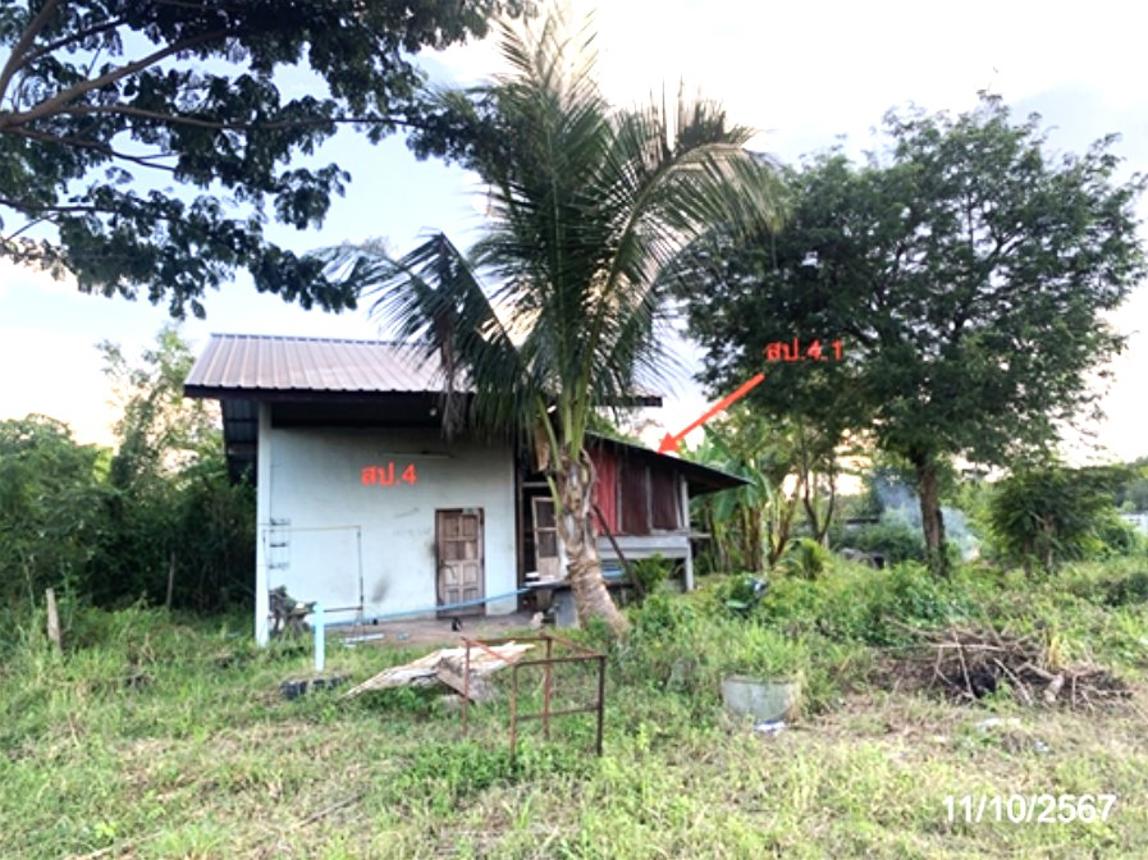 บ้านพักอาศัยชั้นเดียว อายุอาคาร 14 ปี พื้นที่ใช้สอย 42 ตร.ม.และสิ่งปลูกสร้างอื้นๆรวมทั้งหมด 7 รายการ