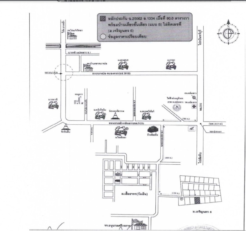 ศูนย์ข้อมูลฯ ได้ทำการตรวจสอบตำแหน่งที่ตั้งทรัพย์บนแผนที่ที่ปรากฎอยู่บนเว็บไซต์ โดยอาศัยข้อมูลจากแหล่งข้อมูลต่างๆ ที่เชื่อถือได้ เพื่อให้ตำแหน่งทรัพย์บนแผนที่ ใช้อ้างอิงท่านไปยังที่ตั้งของทรัพย์นั้นๆ โดยประมาณ ทั้งนี้ศูนย์ข้อมูลฯ ไม่สามารถยืนยันความถูกต้องของตำแหน่งทรัพย์ได้ ดังนั้น ทางศูนย์ข้อมูลฯ ขอสงวนสิทธิ์ไม่รับผิดชอบต่อข้อผิดพลาดทางตำแหน่งทรัพย์ที่เกิดขึ้นบนแผนที่ ผู้นำข้อมูลไปใช้พึงใช้วิจารณญาณและตรวจสอบตามความเหมาะสม