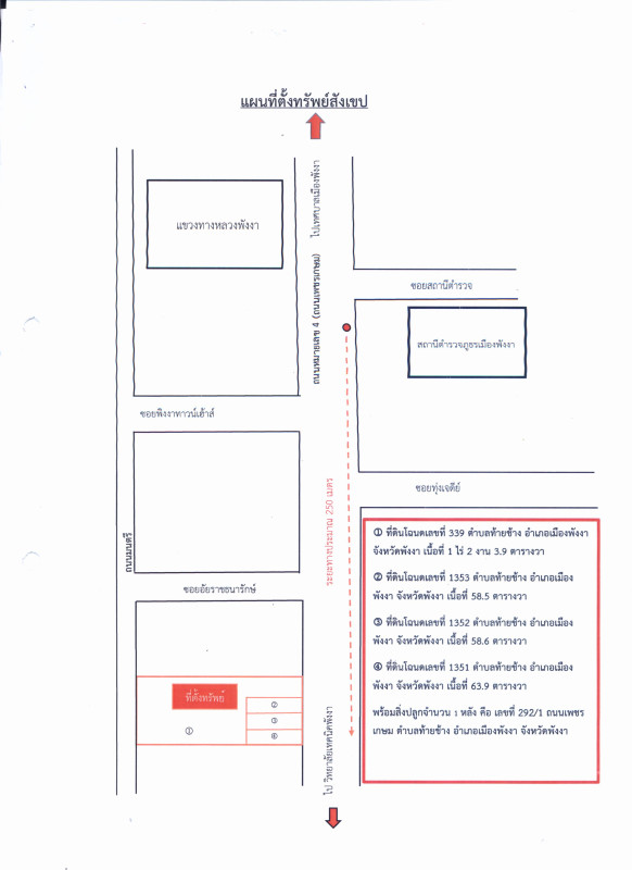 หมายเหตุ*: ขายรวม (แปลงที่ 1-4) รวม 4 แปลง, ราคาประเมินรวม 50,943,008.90 บาท มีสปส.อยู่แต่มิได้ทำการยึดไว้