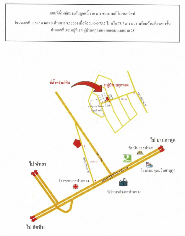 ศูนย์ข้อมูลฯ ได้ทำการตรวจสอบตำแหน่งที่ตั้งทรัพย์บนแผนที่ที่ปรากฎอยู่บนเว็บไซต์ โดยอาศัยข้อมูลจากแหล่งข้อมูลต่างๆ ที่เชื่อถือได้ เพื่อให้ตำแหน่งทรัพย์บนแผนที่ ใช้อ้างอิงท่านไปยังที่ตั้งของทรัพย์นั้นๆ โดยประมาณ ทั้งนี้ศูนย์ข้อมูลฯ ไม่สามารถยืนยันความถูกต้องของตำแหน่งทรัพย์ได้ ดังนั้น ทางศูนย์ข้อมูลฯ ขอสงวนสิทธิ์ไม่รับผิดชอบต่อข้อผิดพลาดทางตำแหน่งทรัพย์ที่เกิดขึ้นบนแผนที่ ผู้นำข้อมูลไปใช้พึงใช้วิจารณญาณและตรวจสอบตามความเหมาะสม