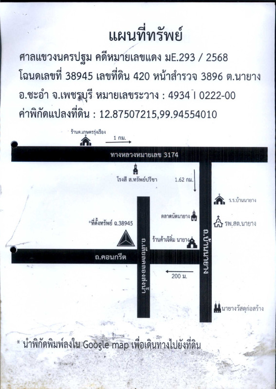 ศูนย์ข้อมูลฯ ได้ทำการตรวจสอบตำแหน่งที่ตั้งทรัพย์บนแผนที่ที่ปรากฎอยู่บนเว็บไซต์ โดยอาศัยข้อมูลจากแหล่งข้อมูลต่างๆ ที่เชื่อถือได้ เพื่อให้ตำแหน่งทรัพย์บนแผนที่ ใช้อ้างอิงท่านไปยังที่ตั้งของทรัพย์นั้นๆ โดยประมาณ ทั้งนี้ศูนย์ข้อมูลฯ ไม่สามารถยืนยันความถูกต้องของตำแหน่งทรัพย์ได้ ดังนั้น ทางศูนย์ข้อมูลฯ ขอสงวนสิทธิ์ไม่รับผิดชอบต่อข้อผิดพลาดทางตำแหน่งทรัพย์ที่เกิดขึ้นบนแผนที่ ผู้นำข้อมูลไปใช้พึงใช้วิจารณญาณและตรวจสอบตามความเหมาะสม