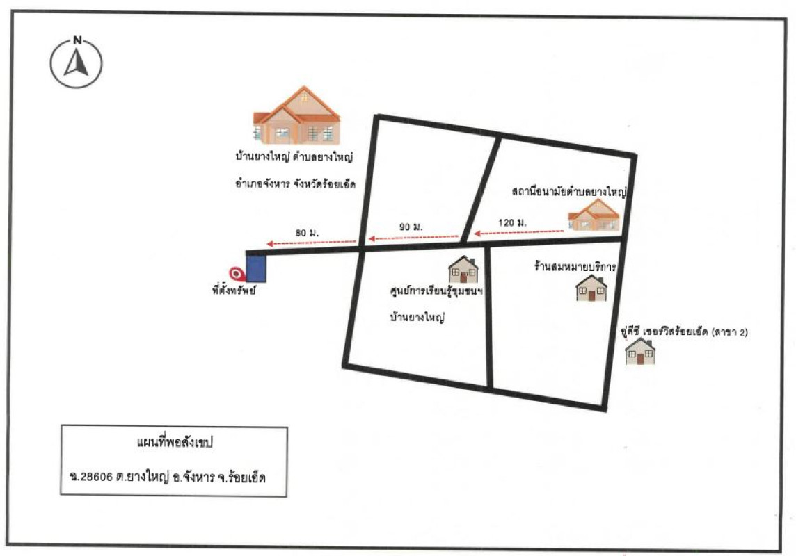 ศูนย์ข้อมูลฯ ได้ทำการตรวจสอบตำแหน่งที่ตั้งทรัพย์บนแผนที่ที่ปรากฎอยู่บนเว็บไซต์ โดยอาศัยข้อมูลจากแหล่งข้อมูลต่างๆ ที่เชื่อถือได้ เพื่อให้ตำแหน่งทรัพย์บนแผนที่ ใช้อ้างอิงท่านไปยังที่ตั้งของทรัพย์นั้นๆ โดยประมาณ ทั้งนี้ศูนย์ข้อมูลฯ ไม่สามารถยืนยันความถูกต้องของตำแหน่งทรัพย์ได้ ดังนั้น ทางศูนย์ข้อมูลฯ ขอสงวนสิทธิ์ไม่รับผิดชอบต่อข้อผิดพลาดทางตำแหน่งทรัพย์ที่เกิดขึ้นบนแผนที่ ผู้นำข้อมูลไปใช้พึงใช้วิจารณญาณและตรวจสอบตามความเหมาะสม