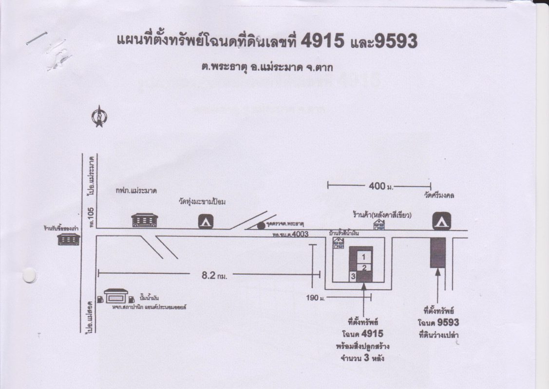 หมายเหตุ*: มีสิ่งปลูกสร้างบนที่ดินจำนวน 3 หลัง