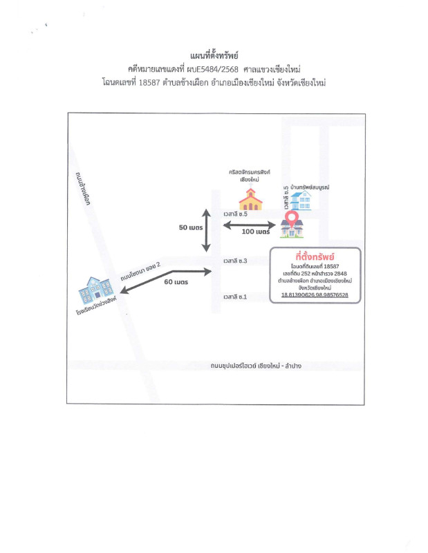 ศูนย์ข้อมูลฯ ได้ทำการตรวจสอบตำแหน่งที่ตั้งทรัพย์บนแผนที่ที่ปรากฎอยู่บนเว็บไซต์ โดยอาศัยข้อมูลจากแหล่งข้อมูลต่างๆ ที่เชื่อถือได้ เพื่อให้ตำแหน่งทรัพย์บนแผนที่ ใช้อ้างอิงท่านไปยังที่ตั้งของทรัพย์นั้นๆ โดยประมาณ ทั้งนี้ศูนย์ข้อมูลฯ ไม่สามารถยืนยันความถูกต้องของตำแหน่งทรัพย์ได้ ดังนั้น ทางศูนย์ข้อมูลฯ ขอสงวนสิทธิ์ไม่รับผิดชอบต่อข้อผิดพลาดทางตำแหน่งทรัพย์ที่เกิดขึ้นบนแผนที่ ผู้นำข้อมูลไปใช้พึงใช้วิจารณญาณและตรวจสอบตามความเหมาะสม