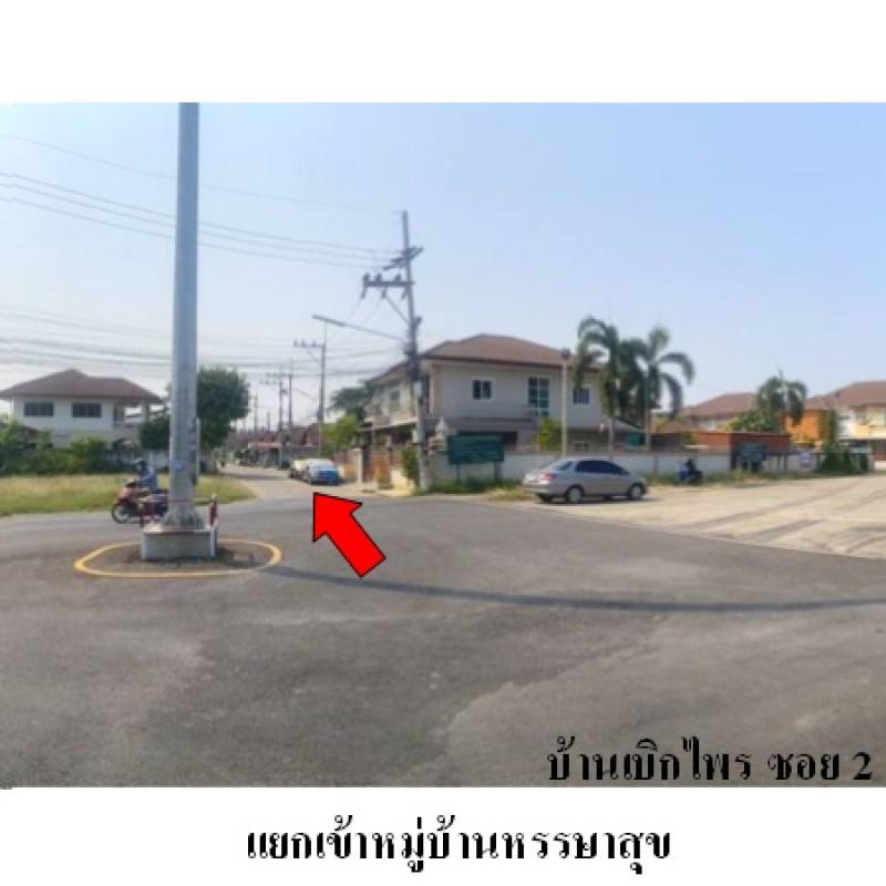 ที่ดินจำนวน 4 แปลงติดต่อกัน เป็นรูปสี่เหลี่ยมผืนผ้า ตั้งอยู่ติดถนน 2 ด้าน ขนาดแปลงที่ดินด้านทิศใต้ กว้างประมาณ 20 ม. และด้านทิศตะวันออก กว้างประมาณ 17.5 ม. ลึกประมาณ 17.5 ม.บสส. รับโอนกรรมสิทธิ์สิ่งปลูกสร้างระบุเป็นบ้านพักอาศัยตึกสองชั้น เลขที่ 70/143ถนนผ่านหน้าทรัพย์สิน ได้แก่ ถนนโครงการหมู่บ้านหรรษาสุข เป็นทางสาธารณประโยชน์ ผิวจราจรคอนกรีต กว้างประมาณ 6 ม. เขตทางกว้างประมาาณ 8 ม.