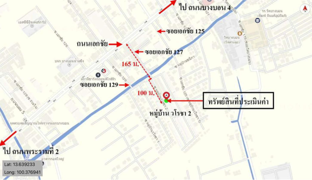 ศูนย์ข้อมูลฯ ได้ทำการตรวจสอบตำแหน่งที่ตั้งทรัพย์บนแผนที่ที่ปรากฎอยู่บนเว็บไซต์ โดยอาศัยข้อมูลจากแหล่งข้อมูลต่างๆ ที่เชื่อถือได้ เพื่อให้ตำแหน่งทรัพย์บนแผนที่ ใช้อ้างอิงท่านไปยังที่ตั้งของทรัพย์นั้นๆ โดยประมาณ ทั้งนี้ศูนย์ข้อมูลฯ ไม่สามารถยืนยันความถูกต้องของตำแหน่งทรัพย์ได้ ดังนั้น ทางศูนย์ข้อมูลฯ ขอสงวนสิทธิ์ไม่รับผิดชอบต่อข้อผิดพลาดทางตำแหน่งทรัพย์ที่เกิดขึ้นบนแผนที่ ผู้นำข้อมูลไปใช้พึงใช้วิจารณญาณและตรวจสอบตามความเหมาะสม