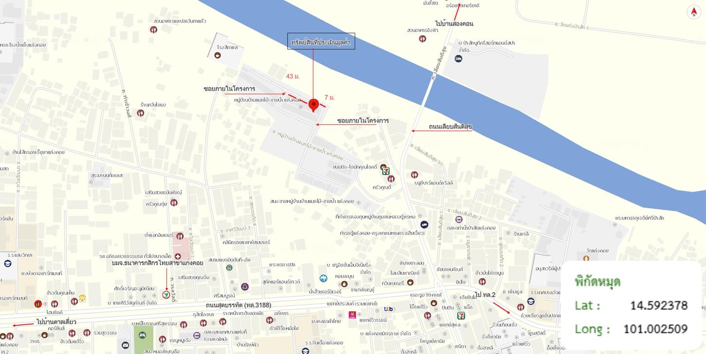 ศูนย์ข้อมูลฯ ได้ทำการตรวจสอบตำแหน่งที่ตั้งทรัพย์บนแผนที่ที่ปรากฎอยู่บนเว็บไซต์ โดยอาศัยข้อมูลจากแหล่งข้อมูลต่างๆ ที่เชื่อถือได้ เพื่อให้ตำแหน่งทรัพย์บนแผนที่ ใช้อ้างอิงท่านไปยังที่ตั้งของทรัพย์นั้นๆ โดยประมาณ ทั้งนี้ศูนย์ข้อมูลฯ ไม่สามารถยืนยันความถูกต้องของตำแหน่งทรัพย์ได้ ดังนั้น ทางศูนย์ข้อมูลฯ ขอสงวนสิทธิ์ไม่รับผิดชอบต่อข้อผิดพลาดทางตำแหน่งทรัพย์ที่เกิดขึ้นบนแผนที่ ผู้นำข้อมูลไปใช้พึงใช้วิจารณญาณและตรวจสอบตามความเหมาะสม