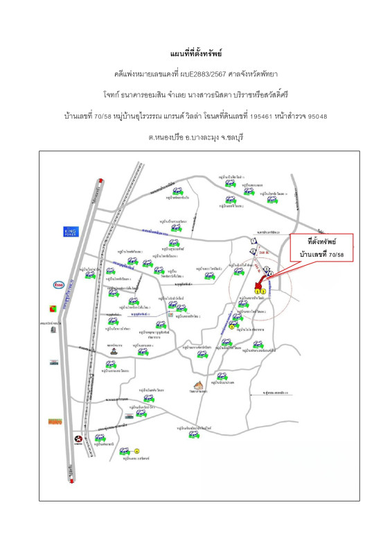 ศูนย์ข้อมูลฯ ได้ทำการตรวจสอบตำแหน่งที่ตั้งทรัพย์บนแผนที่ที่ปรากฎอยู่บนเว็บไซต์ โดยอาศัยข้อมูลจากแหล่งข้อมูลต่างๆ ที่เชื่อถือได้ เพื่อให้ตำแหน่งทรัพย์บนแผนที่ ใช้อ้างอิงท่านไปยังที่ตั้งของทรัพย์นั้นๆ โดยประมาณ ทั้งนี้ศูนย์ข้อมูลฯ ไม่สามารถยืนยันความถูกต้องของตำแหน่งทรัพย์ได้ ดังนั้น ทางศูนย์ข้อมูลฯ ขอสงวนสิทธิ์ไม่รับผิดชอบต่อข้อผิดพลาดทางตำแหน่งทรัพย์ที่เกิดขึ้นบนแผนที่ ผู้นำข้อมูลไปใช้พึงใช้วิจารณญาณและตรวจสอบตามความเหมาะสม