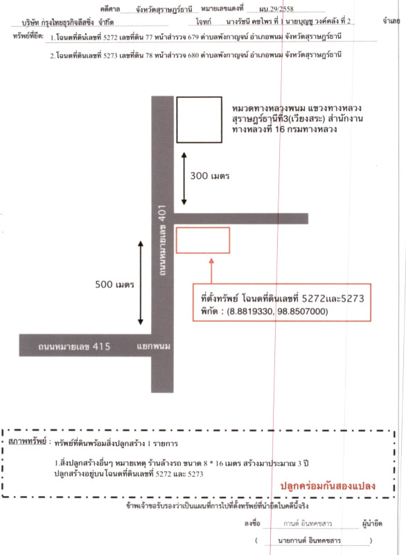 หมายเหตุ*: ขายรวมกับที่ดินโฉนดเลขที่ 5272, ราคาประเมินรวม 1,074,528.-บาท