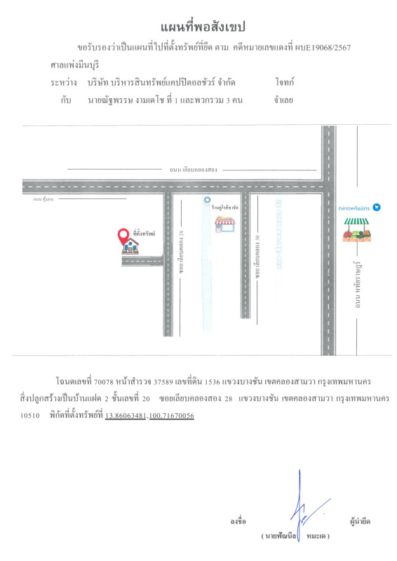 ศูนย์ข้อมูลฯ ได้ทำการตรวจสอบตำแหน่งที่ตั้งทรัพย์บนแผนที่ที่ปรากฎอยู่บนเว็บไซต์ โดยอาศัยข้อมูลจากแหล่งข้อมูลต่างๆ ที่เชื่อถือได้ เพื่อให้ตำแหน่งทรัพย์บนแผนที่ ใช้อ้างอิงท่านไปยังที่ตั้งของทรัพย์นั้นๆ โดยประมาณ ทั้งนี้ศูนย์ข้อมูลฯ ไม่สามารถยืนยันความถูกต้องของตำแหน่งทรัพย์ได้ ดังนั้น ทางศูนย์ข้อมูลฯ ขอสงวนสิทธิ์ไม่รับผิดชอบต่อข้อผิดพลาดทางตำแหน่งทรัพย์ที่เกิดขึ้นบนแผนที่ ผู้นำข้อมูลไปใช้พึงใช้วิจารณญาณและตรวจสอบตามความเหมาะสม