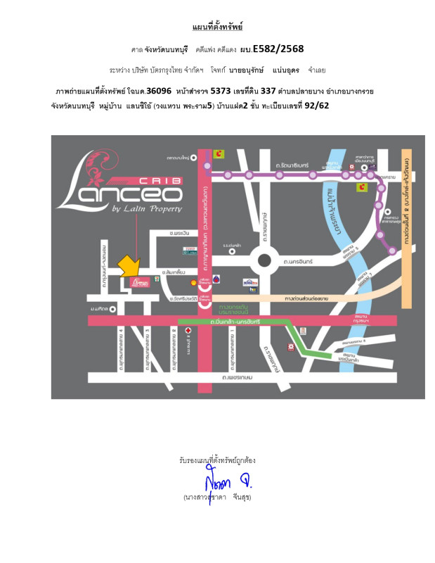 ศูนย์ข้อมูลฯ ได้ทำการตรวจสอบตำแหน่งที่ตั้งทรัพย์บนแผนที่ที่ปรากฎอยู่บนเว็บไซต์ โดยอาศัยข้อมูลจากแหล่งข้อมูลต่างๆ ที่เชื่อถือได้ เพื่อให้ตำแหน่งทรัพย์บนแผนที่ ใช้อ้างอิงท่านไปยังที่ตั้งของทรัพย์นั้นๆ โดยประมาณ ทั้งนี้ศูนย์ข้อมูลฯ ไม่สามารถยืนยันความถูกต้องของตำแหน่งทรัพย์ได้ ดังนั้น ทางศูนย์ข้อมูลฯ ขอสงวนสิทธิ์ไม่รับผิดชอบต่อข้อผิดพลาดทางตำแหน่งทรัพย์ที่เกิดขึ้นบนแผนที่ ผู้นำข้อมูลไปใช้พึงใช้วิจารณญาณและตรวจสอบตามความเหมาะสม