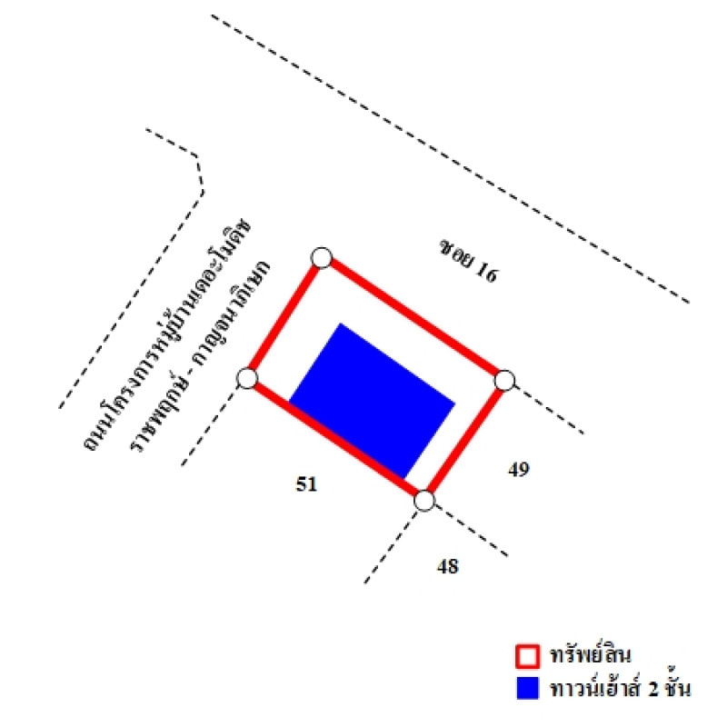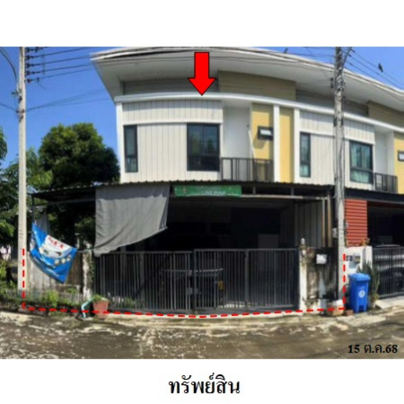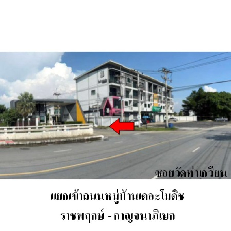 ที่ดินเป็นรูปสี่เหลี่ยมผืนผ้า ตั้งอยู่ติดถนน 2 ด้าน ขนาดแปลงที่ดินด้านทิศตะวันออก กว้างประมาณ 8.5 ม. และด้านทิศเหนือ กว้างประมาณ 13.5 ม. ลึกประมาณ 13.5 ม.บสส. รับโอนกรรมสิทธิ์สิ่งปลูกสร้างระบุเป็นทาวน์เฮ้าส์ 2 ชั้น เลขที่ 77/303 ถนนผ่านหน้าทรัพย์สิน ได้แก่ ถนนโครงการหมู่บ้านเดอะ โมดิช ราชพฤกษ์-กาญจนาภิเษก เป็นทางในโครงการจัดสรรที่ได้รับอนุญาตแล้ว ผิวจราจรคอนกรีต กว้างประมาณ 8 ม. เขตทางกว้างประมาณ 10 ม.