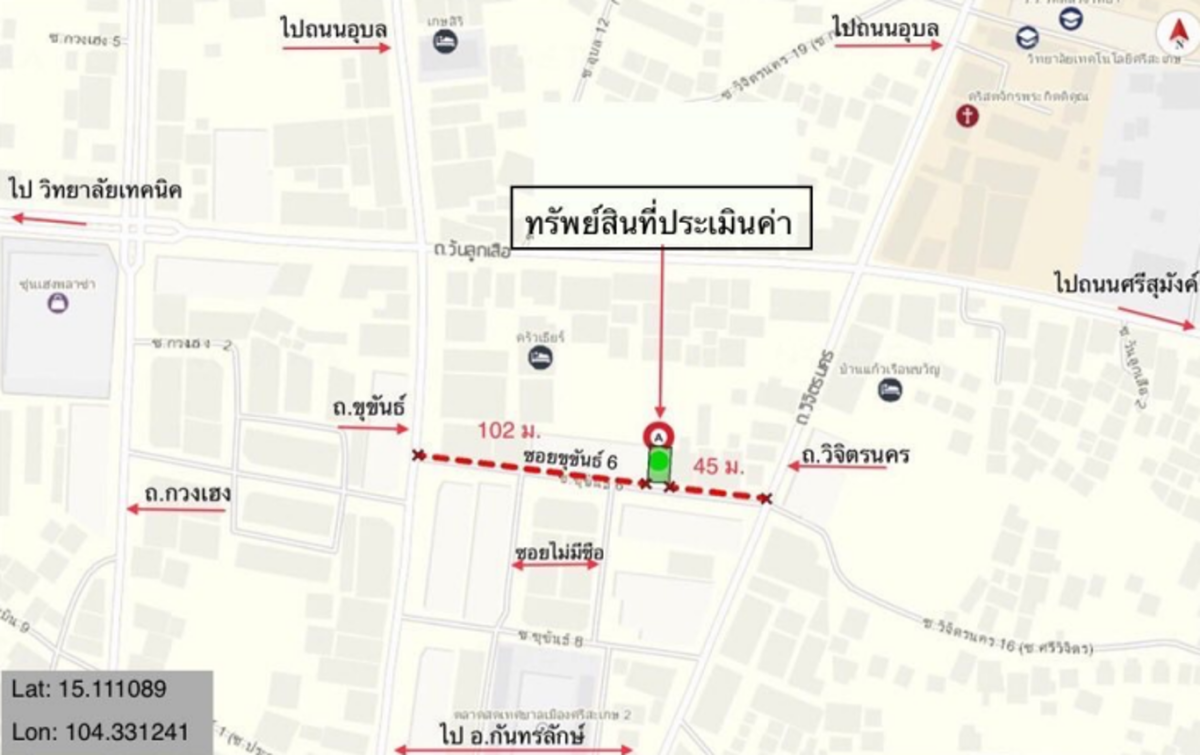 ศูนย์ข้อมูลฯ ได้ทำการตรวจสอบตำแหน่งที่ตั้งทรัพย์บนแผนที่ที่ปรากฎอยู่บนเว็บไซต์ โดยอาศัยข้อมูลจากแหล่งข้อมูลต่างๆ ที่เชื่อถือได้ เพื่อให้ตำแหน่งทรัพย์บนแผนที่ ใช้อ้างอิงท่านไปยังที่ตั้งของทรัพย์นั้นๆ โดยประมาณ ทั้งนี้ศูนย์ข้อมูลฯ ไม่สามารถยืนยันความถูกต้องของตำแหน่งทรัพย์ได้ ดังนั้น ทางศูนย์ข้อมูลฯ ขอสงวนสิทธิ์ไม่รับผิดชอบต่อข้อผิดพลาดทางตำแหน่งทรัพย์ที่เกิดขึ้นบนแผนที่ ผู้นำข้อมูลไปใช้พึงใช้วิจารณญาณและตรวจสอบตามความเหมาะสม
