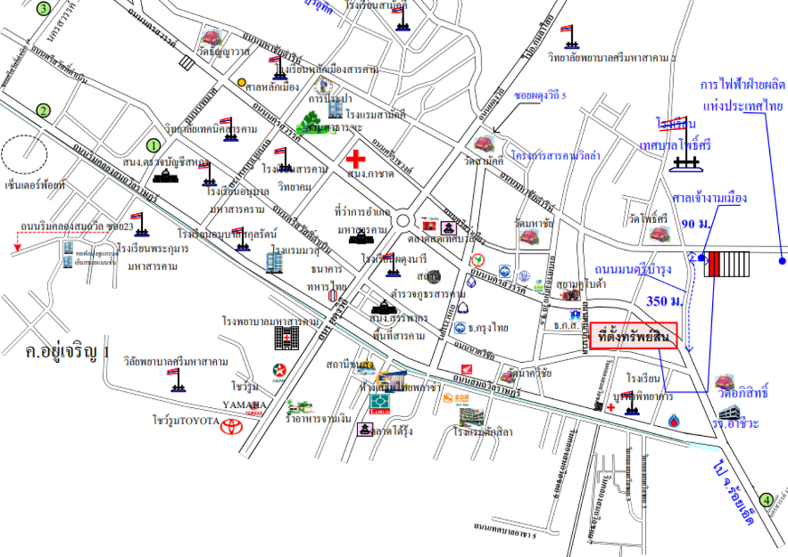 ศูนย์ข้อมูลฯ ได้ทำการตรวจสอบตำแหน่งที่ตั้งทรัพย์บนแผนที่ที่ปรากฎอยู่บนเว็บไซต์ โดยอาศัยข้อมูลจากแหล่งข้อมูลต่างๆ ที่เชื่อถือได้ เพื่อให้ตำแหน่งทรัพย์บนแผนที่ ใช้อ้างอิงท่านไปยังที่ตั้งของทรัพย์นั้นๆ โดยประมาณ ทั้งนี้ศูนย์ข้อมูลฯ ไม่สามารถยืนยันความถูกต้องของตำแหน่งทรัพย์ได้ ดังนั้น ทางศูนย์ข้อมูลฯ ขอสงวนสิทธิ์ไม่รับผิดชอบต่อข้อผิดพลาดทางตำแหน่งทรัพย์ที่เกิดขึ้นบนแผนที่ ผู้นำข้อมูลไปใช้พึงใช้วิจารณญาณและตรวจสอบตามความเหมาะสม