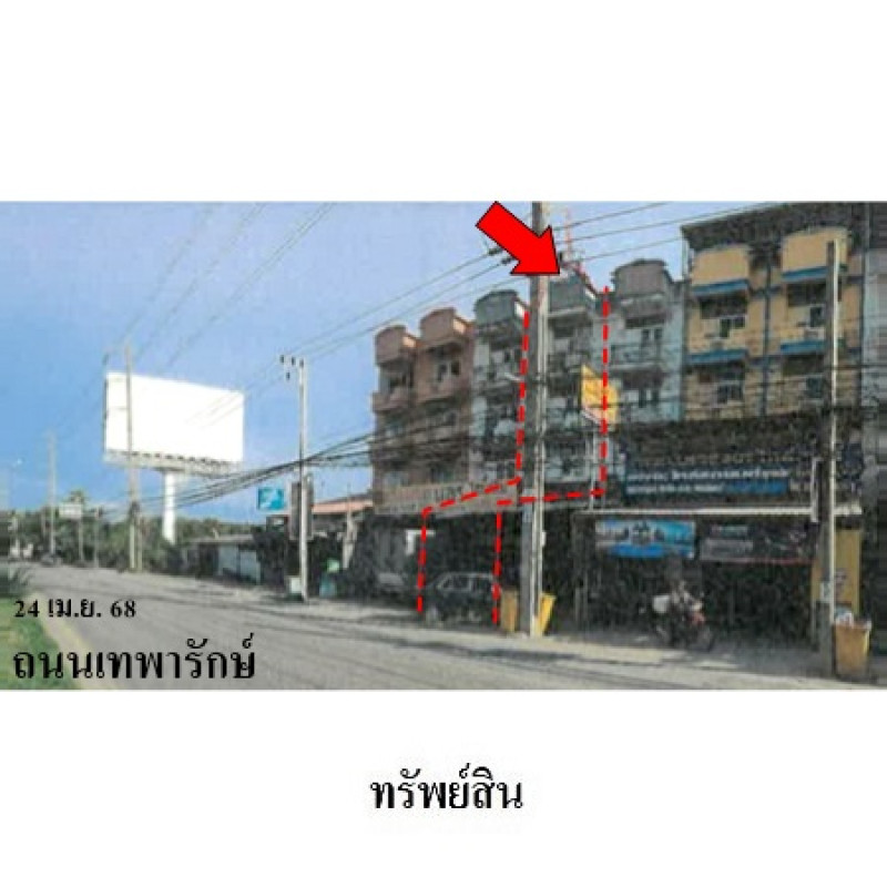 ที่ดินเป็นรูปสี่เหลี่ยมผืนผ้า ขนาดแปลงที่ดินด้านทิศเหนือ ติดถนน กว้างประมาณ 4 ม. ลึกประมาณ 22.5 ม.บสส.รับโอนกรรมสิทธิ์สิ่งปลูกสร้าง ระบุเป็น ตึกแถวสี่ชั้น เลขที่ 109/13, โรงจอดรถข้อมูลจากการสำรวจสภาพสิ่งปลูกสร้างมีลักษณะเป็น อาคารพาณิชย์ 4 ชั้นมีชั้นลอยถนนผ่านหน้าทรัพย์สิน เป็นทางส่วนบุคคล ได้แก่ โฉนดที่ดินเลขที่ 57050 ซึ่งยังไม่ได้จดภาระจำยอมให้แก่แปลงทรัพย์สิน มีสภาพเป็นทางเข้า-ออก อย่างเปิดเผย ผิวจราจรคอนกรีต กว้างประมาณ 4 ม. เขตทางกว้างประมาณ 4 ม.++ผู้สนใจควรตรวจสอบเรื่องสิทธิในการใช้ทางให้เป็นที่พึงพอใจก่อนการเสนอซื้อ++