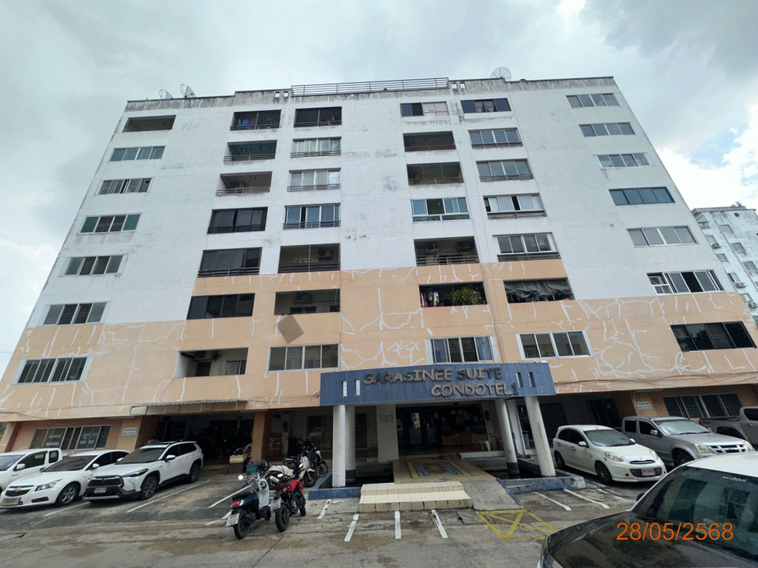 คอนโดมิเนียม โครงการสราสินี สวีท เป็นอาคารสูง 8 ชั้น สภาพอาคารปานกลาง ทรัพย์ตั้งอยู่ชั้น 2 พื้นที่ 33.40 ตร.ม. มีลิฟต์ ระบบคีย์การ์ดในการเข้า-ออก อาคาร