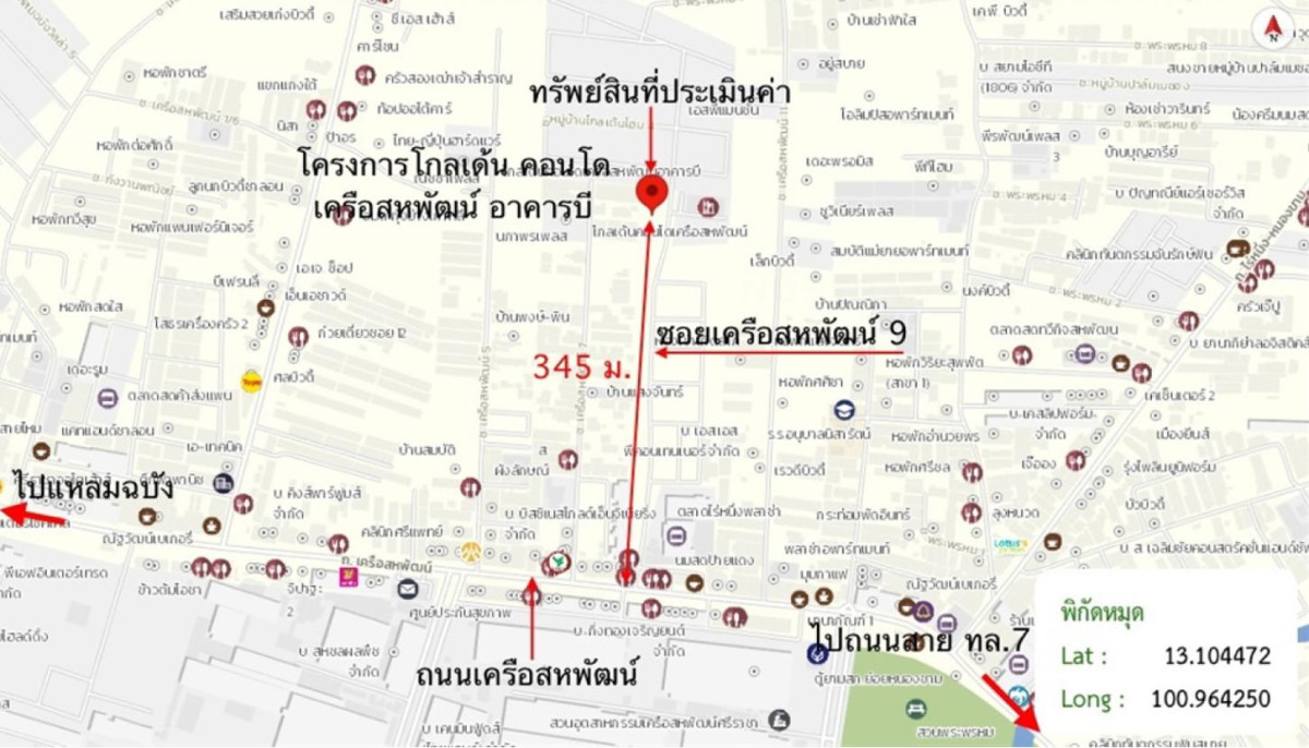 ศูนย์ข้อมูลฯ ได้ทำการตรวจสอบตำแหน่งที่ตั้งทรัพย์บนแผนที่ที่ปรากฎอยู่บนเว็บไซต์ โดยอาศัยข้อมูลจากแหล่งข้อมูลต่างๆ ที่เชื่อถือได้ เพื่อให้ตำแหน่งทรัพย์บนแผนที่ ใช้อ้างอิงท่านไปยังที่ตั้งของทรัพย์นั้นๆ โดยประมาณ ทั้งนี้ศูนย์ข้อมูลฯ ไม่สามารถยืนยันความถูกต้องของตำแหน่งทรัพย์ได้ ดังนั้น ทางศูนย์ข้อมูลฯ ขอสงวนสิทธิ์ไม่รับผิดชอบต่อข้อผิดพลาดทางตำแหน่งทรัพย์ที่เกิดขึ้นบนแผนที่ ผู้นำข้อมูลไปใช้พึงใช้วิจารณญาณและตรวจสอบตามความเหมาะสม