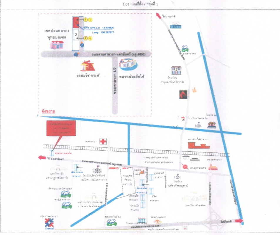 ศูนย์ข้อมูลฯ ได้ทำการตรวจสอบตำแหน่งที่ตั้งทรัพย์บนแผนที่ที่ปรากฎอยู่บนเว็บไซต์ โดยอาศัยข้อมูลจากแหล่งข้อมูลต่างๆ ที่เชื่อถือได้ เพื่อให้ตำแหน่งทรัพย์บนแผนที่ ใช้อ้างอิงท่านไปยังที่ตั้งของทรัพย์นั้นๆ โดยประมาณ ทั้งนี้ศูนย์ข้อมูลฯ ไม่สามารถยืนยันความถูกต้องของตำแหน่งทรัพย์ได้ ดังนั้น ทางศูนย์ข้อมูลฯ ขอสงวนสิทธิ์ไม่รับผิดชอบต่อข้อผิดพลาดทางตำแหน่งทรัพย์ที่เกิดขึ้นบนแผนที่ ผู้นำข้อมูลไปใช้พึงใช้วิจารณญาณและตรวจสอบตามความเหมาะสม