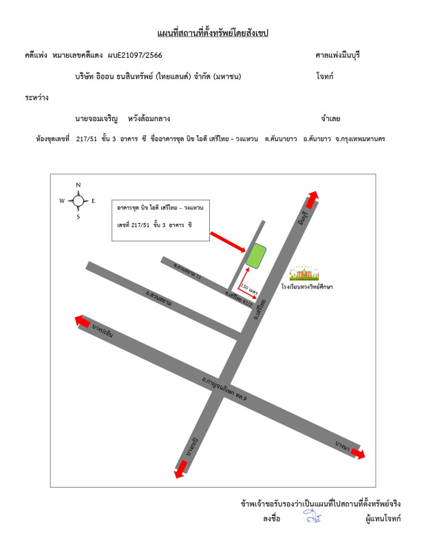 ศูนย์ข้อมูลฯ ได้ทำการตรวจสอบตำแหน่งที่ตั้งทรัพย์บนแผนที่ที่ปรากฎอยู่บนเว็บไซต์ โดยอาศัยข้อมูลจากแหล่งข้อมูลต่างๆ ที่เชื่อถือได้ เพื่อให้ตำแหน่งทรัพย์บนแผนที่ ใช้อ้างอิงท่านไปยังที่ตั้งของทรัพย์นั้นๆ โดยประมาณ ทั้งนี้ศูนย์ข้อมูลฯ ไม่สามารถยืนยันความถูกต้องของตำแหน่งทรัพย์ได้ ดังนั้น ทางศูนย์ข้อมูลฯ ขอสงวนสิทธิ์ไม่รับผิดชอบต่อข้อผิดพลาดทางตำแหน่งทรัพย์ที่เกิดขึ้นบนแผนที่ ผู้นำข้อมูลไปใช้พึงใช้วิจารณญาณและตรวจสอบตามความเหมาะสม