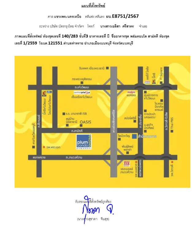 ศูนย์ข้อมูลฯ ได้ทำการตรวจสอบตำแหน่งที่ตั้งทรัพย์บนแผนที่ที่ปรากฎอยู่บนเว็บไซต์ โดยอาศัยข้อมูลจากแหล่งข้อมูลต่างๆ ที่เชื่อถือได้ เพื่อให้ตำแหน่งทรัพย์บนแผนที่ ใช้อ้างอิงท่านไปยังที่ตั้งของทรัพย์นั้นๆ โดยประมาณ ทั้งนี้ศูนย์ข้อมูลฯ ไม่สามารถยืนยันความถูกต้องของตำแหน่งทรัพย์ได้ ดังนั้น ทางศูนย์ข้อมูลฯ ขอสงวนสิทธิ์ไม่รับผิดชอบต่อข้อผิดพลาดทางตำแหน่งทรัพย์ที่เกิดขึ้นบนแผนที่ ผู้นำข้อมูลไปใช้พึงใช้วิจารณญาณและตรวจสอบตามความเหมาะสม