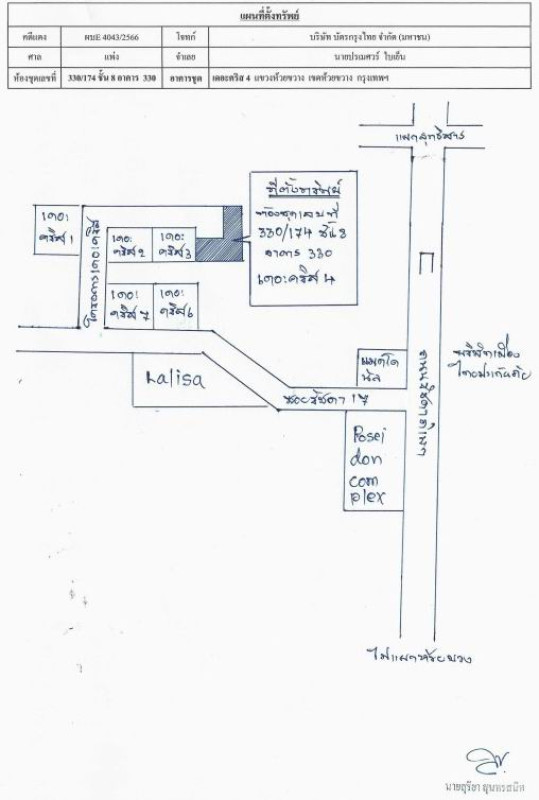หมายเหตุ*: เนื้อที่ห้องชุดประมาณ 21.64 ตร.ม. เนื้อที่ระเบียง 2.4 ตร.ม., ขายตามสำเนาหนังสือกรรมสิทธิ์ห้องชุด