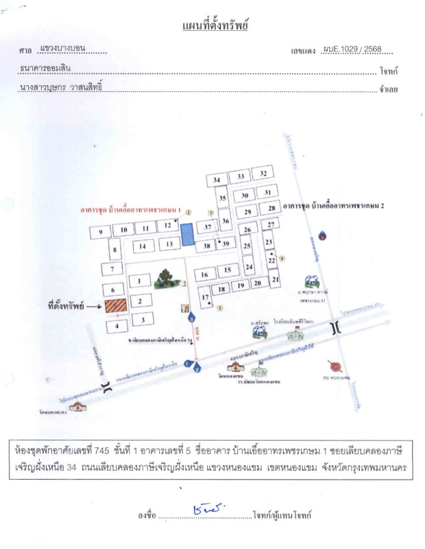 ศูนย์ข้อมูลฯ ได้ทำการตรวจสอบตำแหน่งที่ตั้งทรัพย์บนแผนที่ที่ปรากฎอยู่บนเว็บไซต์ โดยอาศัยข้อมูลจากแหล่งข้อมูลต่างๆ ที่เชื่อถือได้ เพื่อให้ตำแหน่งทรัพย์บนแผนที่ ใช้อ้างอิงท่านไปยังที่ตั้งของทรัพย์นั้นๆ โดยประมาณ ทั้งนี้ศูนย์ข้อมูลฯ ไม่สามารถยืนยันความถูกต้องของตำแหน่งทรัพย์ได้ ดังนั้น ทางศูนย์ข้อมูลฯ ขอสงวนสิทธิ์ไม่รับผิดชอบต่อข้อผิดพลาดทางตำแหน่งทรัพย์ที่เกิดขึ้นบนแผนที่ ผู้นำข้อมูลไปใช้พึงใช้วิจารณญาณและตรวจสอบตามความเหมาะสม