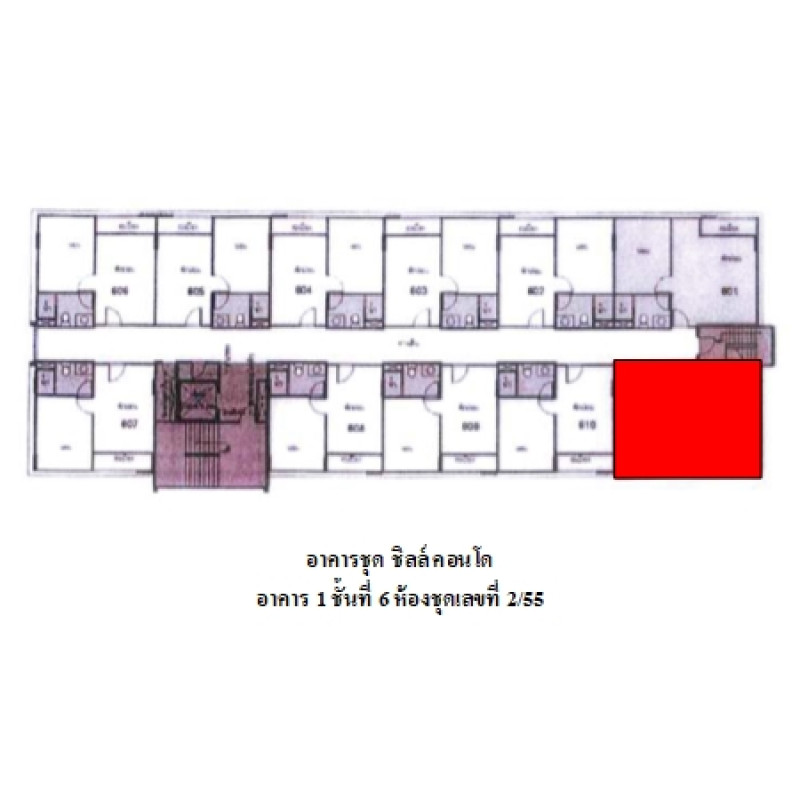 ห้องชุดพักอาศัย เลขที่ 2/55 ชั้นที่ 6 อาคารเลขที่ 1 ชื่ออาคารชุด ชิลล์ คอนโด ทะเบียนอาคารชุดเลขที่ 8/2558อัตราส่วนแห่งกรรมสิทธิ์ในทรัพย์ส่วนกลาง : 39.32 ส่วน ใน 2,543.89 ส่วนข้อมูลอาคารชุด : อาคารสูง 8 ชั้น มีจำนวนห้องชุดรวม 77 ห้อง โดยโครงการฯ มีทั้งหมด 1 อาคารสิ่งอำนวยความสะดวกภายในอาคาร : ที่จอดรถ, ลิฟท์โดยสาร, สระว่ายน้ำ, รปภ. 24 ชม., กล้องวงจรปิด และบัตรเข้า-ออก เป็นต้น